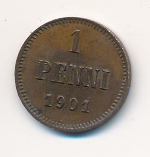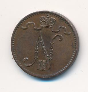 Лицевая сторона — вензель Александра II, оборотная — номинал (1 PENNIA) и дата. Нормативный вес — 1,28 грамма, гурт гладкий.