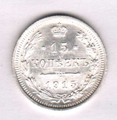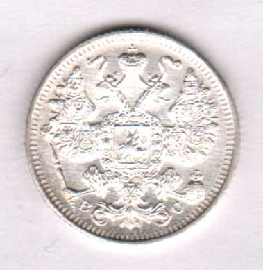 Лицевая сторона — гербовый орел, оборотная —обозначение номинала (15 копеекъ), окруженное венком из лавровой и дубовой ветвей и дата.