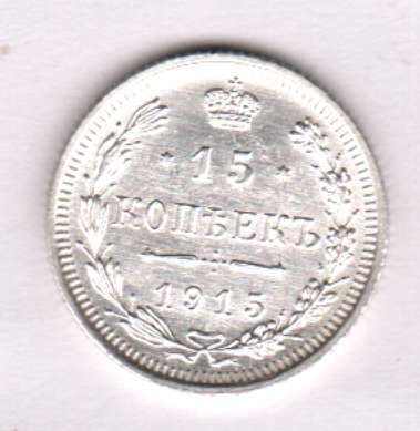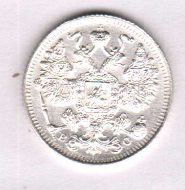Лицевая сторона — гербовый орел, оборотная —обозначение номинала (15 копеекъ), окруженное венком из лавровой и дубовой ветвей и дата.