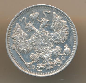 Лицевая сторона — гербовый орел, оборотная —обозначение номинала (15 копеекъ), окруженное венком из лавровой и дубовой ветвей и дата.