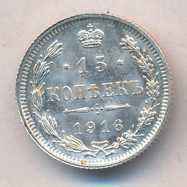 Лицевая сторона — гербовый орел, оборотная —обозначение номинала (15 копеекъ), окруженное венком из лавровой и дубовой ветвей и дата.