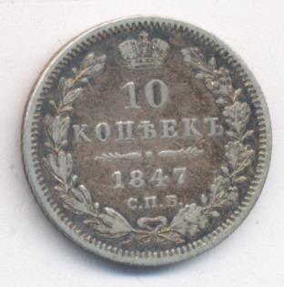 Лицевая сторона — новый гербовый орел с поднятыми крыльями, оборотная —обозначение номинала (10 копеекъ), окруженное венком из лавровой и дубовой ветвей и дата. Проба — 868, нормативный вес — 2,07 грамма.