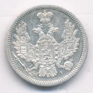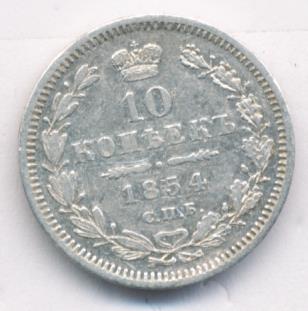 Лицевая сторона — новый гербовый орел с поднятыми крыльями, оборотная —обозначение номинала (10 копеекъ), окруженное венком из лавровой и дубовой ветвей и дата. Проба — 868, нормативный вес — 2,07 грамма.