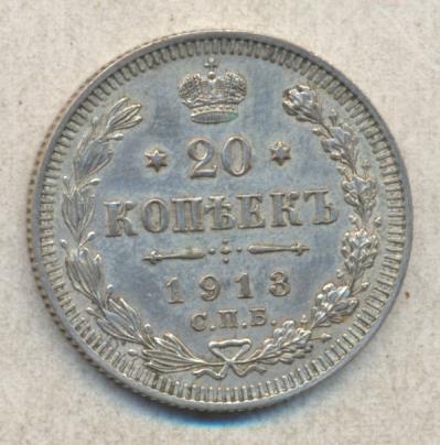 Лицевая сторона — гербовый орел, оборотная —обозначение номинала (20 копеекъ), окруженное венком из лавровой и дубовой ветвей и дата.