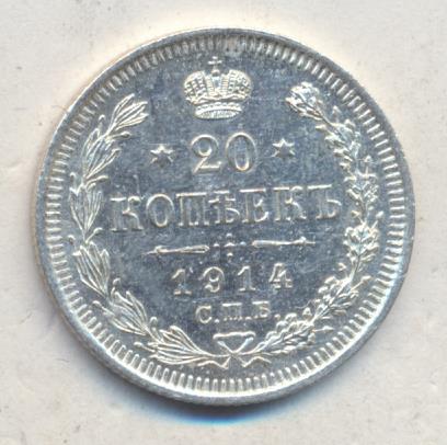 Лицевая сторона — гербовый орел, оборотная —обозначение номинала (20 копеекъ), окруженное венком из лавровой и дубовой ветвей и дата.