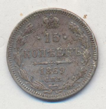 Лицевая сторона — гербовый орел, оборотная —обозначение номинала (15 копеекъ), окруженное венком из лавровой и дубовой ветвей и дата.