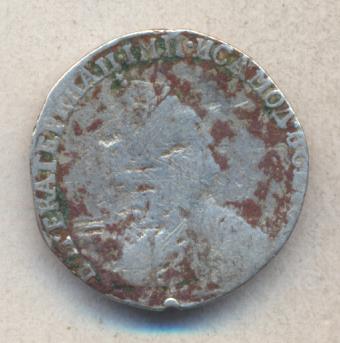 Медальер — Тимофей Иванов ( без знака или TI в рукаве). На оборотной стороне монеты — обозначение номинала в картуше под короной.