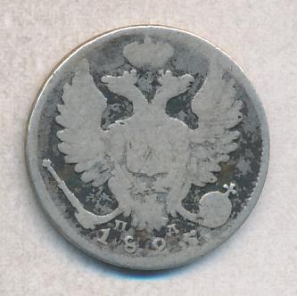Лицевая сторона - двуглавый орел и дата, оборотная — обозначение номинала (10 копеекъ) в венке из лавровой и дубовой ветвей. Проба до 1813 года — 750, нормативный вес — 2,40 грамма; после 1813 года — проба 868, нормативный вес — 2,07 грамма.