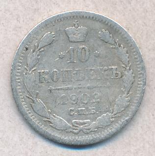Лицевая сторона — гербовый орел, оборотная —обозначение номинала (10 копеекъ), окруженное венком из лавровой и дубовой ветвей и дата.