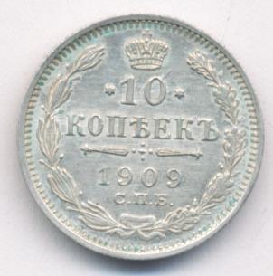 Лицевая сторона — гербовый орел, оборотная —обозначение номинала (10 копеекъ), окруженное венком из лавровой и дубовой ветвей и дата.