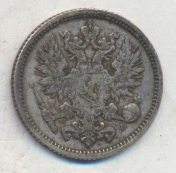 Лицевая сторона — российский двуглавый орел с гербом Великого княжества Финляндского на груди, оборотная — номинал и дата в венке из дубовых листьев. Проба — 750, нормативный вес — 2,55 грамма, гурт рубчатый.