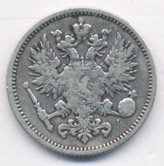 Лицевая сторона — российский двуглавый орел с гербом Великого княжества Финляндского на груди, оборотная — номинал и дата в венке из дубовых листьев. Проба — 750, нормативный вес — 2,55 грамма, гурт рубчатый.