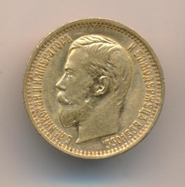 Лицевая сторона — портрет Николая II и надпись «Б.М. НИКОЛАЙ II ИМПЕРАТОРЪ И САМОДЕРЖЕЦЪ ВСЕРОСС»», оборотная — двуглавый орел, обозначение номинала (5 рублей) и дата.