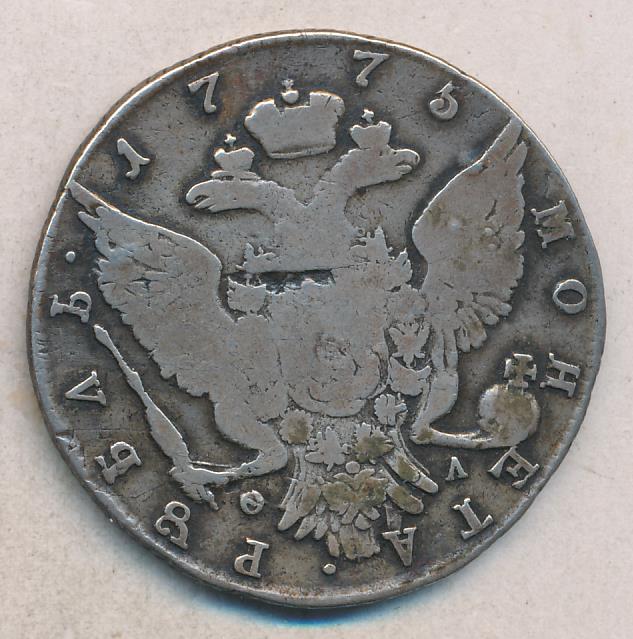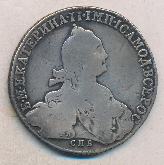 Лицевая сторона — портрет императрицы и надпись «Б М ЕКАТЕРИНА II IМП I САМОД ВСЕРОС», оборотная — двуглавый орел и надпись «МОНЕТА РУБЛЬ» и дата. Проба — 750, нормативный вес — 24 грамма, гурт — шнур.