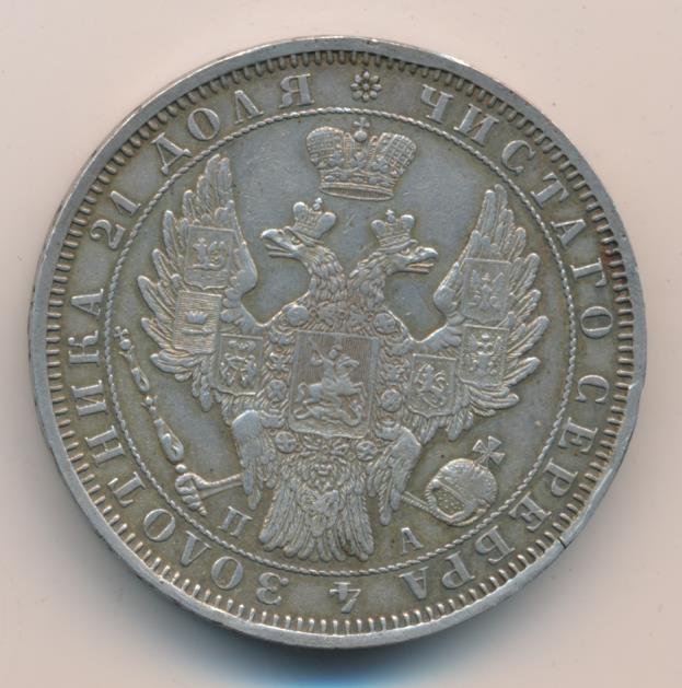 Лицевая сторона — новый гербовый орел с поднятыми крыльями и надпись «ЧИСТОГО СЕРЕБРА 4 ЗОЛОТНИКА 21 ДОЛЯ», оборотная — надпись «МОНЕТА РУБЛЬ», окруженная венком из лавровой и дубовой ветвей и дата.