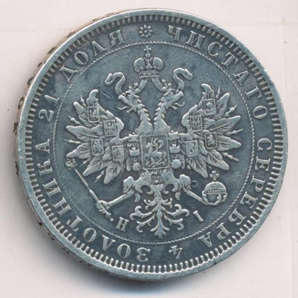 Лицевая сторона — гербовый орел и надпись «ЧИСТОГО СЕРЕБРА 4 ЗОЛОТНИКА 21 ДОЛЯ», оборотная — обозначение номинала «РУБЛЬ», окруженное венком из лавровой и дубовой ветвей и дата.