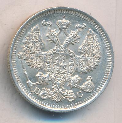 Лицевая сторона — гербовый орел, оборотная —обозначение номинала (20 копеекъ), окруженное венком из лавровой и дубовой ветвей и дата.
