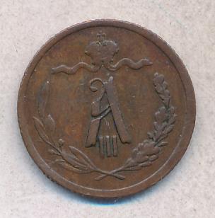 Лицевая сторона — вензель Александра II в венке из лавровой и дубовой ветвей; оборотная — обозначение номинала (1/2 копейки) и дата. Нормативный вес — 1,64 грамма, гурт рубчатый.