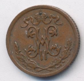 Лицевая сторона — вензель Александра II в венке из лавровой и дубовой ветвей; оборотная — обозначение номинала (1/2 копейки) и дата. Нормативный вес — 1,64 грамма, гурт рубчатый.