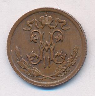 Лицевая сторона — вензель Александра II в венке из лавровой и дубовой ветвей; оборотная — обозначение номинала (1/2 копейки) и дата. Нормативный вес — 1,64 грамма, гурт рубчатый.