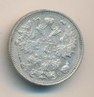 Лицевая сторона — гербовый орел, оборотная —обозначение номинала (15 копеекъ), окруженное венком из лавровой и дубовой ветвей и дата.
