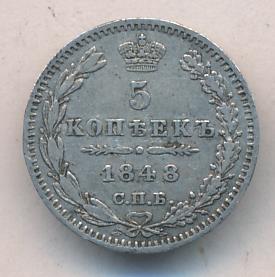 Лицевая сторона — новый гербовый орел с поднятыми крыльями, оборотная —обозначение номинала (5 копеекъ), окруженное венком из лавровой и дубовой ветвей и дата. Проба — 868, нормативный вес — 1,04 грамма.