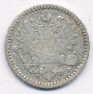 Лицевая сторона — российский двуглавый орел с гербом Великого княжества Финляндского на груди, оборотная — номинал и дата в венке из дубовых листьев. Проба — 750, нормативный вес — 2,55 грамма, гурт рубчатый.