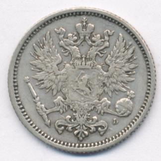 Лицевая сторона — российский двуглавый орел с гербом Великого княжества Финляндского на груди, оборотная — номинал и дата в венке из дубовых листьев. Проба — 750, нормативный вес — 2,55 грамма, гурт рубчатый.