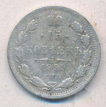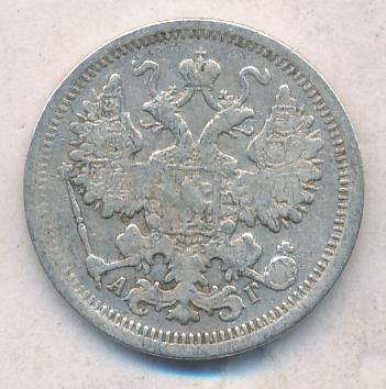 Лицевая сторона — гербовый орел, оборотная —обозначение номинала (15 копеекъ), окруженное венком из лавровой и дубовой ветвей и дата.