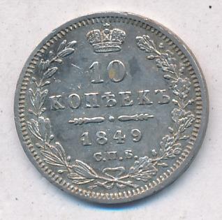 Лицевая сторона — новый гербовый орел с поднятыми крыльями, оборотная —обозначение номинала (10 копеекъ), окруженное венком из лавровой и дубовой ветвей и дата. Проба — 868, нормативный вес — 2,07 грамма.