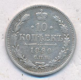 Лицевая сторона — гербовый орел, оборотная —обозначение номинала (10 копеекъ), окруженное венком из лавровой и дубовой ветвей и дата.