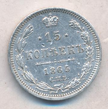Лицевая сторона — гербовый орел, оборотная —обозначение номинала (15 копеекъ), окруженное венком из лавровой и дубовой ветвей и дата.