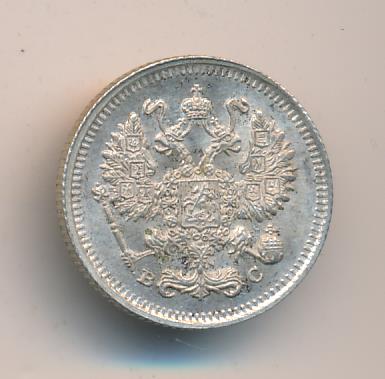 Лицевая сторона — гербовый орел, оборотная —обозначение номинала (10 копеекъ), окруженное венком из лавровой и дубовой ветвей и дата.