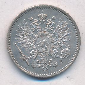 Лицевая сторона — российский двуглавый орел с гербом Великого княжества Финляндского на груди, оборотная — номинал и дата в венке из дубовых листьев. Проба — 750, нормативный вес — 1,27 грамма, гурт рубчатый.