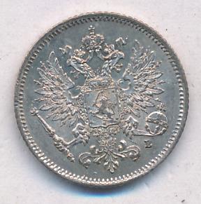 Лицевая сторона — российский двуглавый орел с гербом Великого княжества Финляндского на груди, оборотная — номинал и дата в венке из дубовых листьев. Проба — 750, нормативный вес — 1,27 грамма, гурт рубчатый.