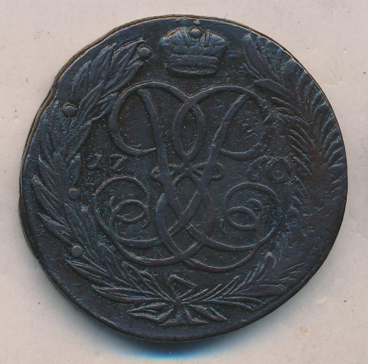 Сложный симметричный вензель оборотной стороны («связаное имя Ея Императорскаго Величества под Императорскою короною между лавровых ветвей, а по сторонам год») по одной из версий дало название «решка», то есть решето (при игре в орлянку).
