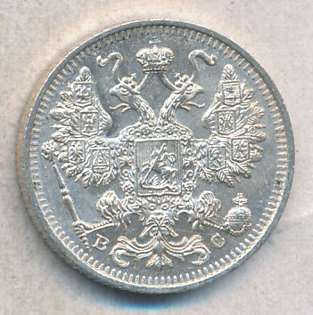 Лицевая сторона — гербовый орел, оборотная —обозначение номинала (15 копеекъ), окруженное венком из лавровой и дубовой ветвей и дата.