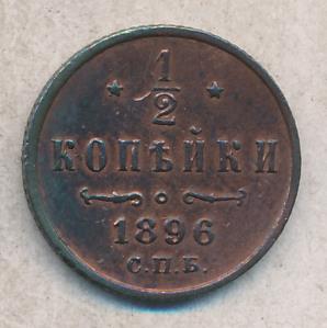 Лицевая сторона — вензель Александра II в венке из лавровой и дубовой ветвей; оборотная — обозначение номинала (1/2 копейки) и дата. Нормативный вес — 1,64 грамма, гурт рубчатый.