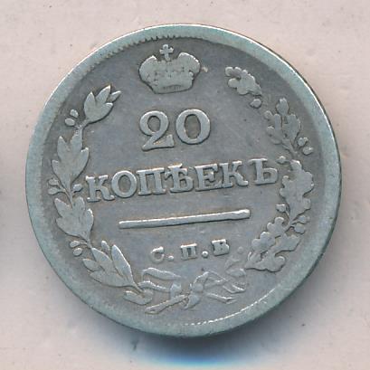 Лицевая сторона - двуглавый орел и дата, оборотная — обозначение номинала (20 копеекъ) в венке из лавровой и дубовой ветвей. Проба до 1813 года — 750, нормативный вес — 4,80 грамма; после 1813 года — проба 868, нормативный вес — 4,15 грамма.