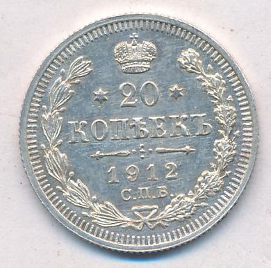 Лицевая сторона — гербовый орел, оборотная —обозначение номинала (20 копеекъ), окруженное венком из лавровой и дубовой ветвей и дата.