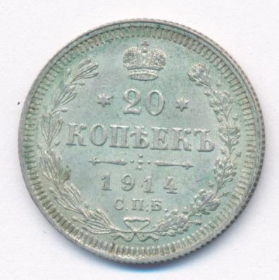 Лицевая сторона — гербовый орел, оборотная —обозначение номинала (20 копеекъ), окруженное венком из лавровой и дубовой ветвей и дата.