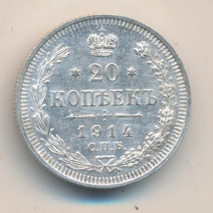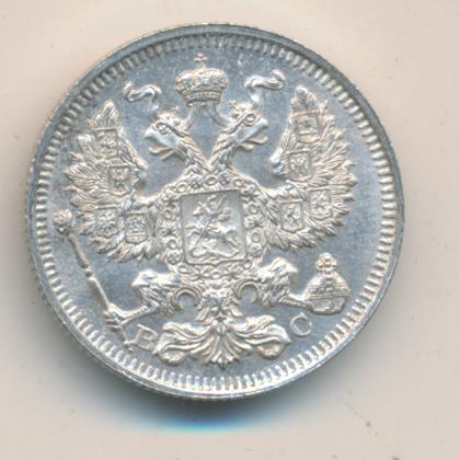 Лицевая сторона — гербовый орел, оборотная —обозначение номинала (20 копеекъ), окруженное венком из лавровой и дубовой ветвей и дата.