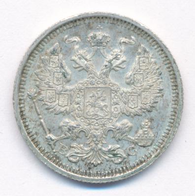 Лицевая сторона — гербовый орел, оборотная —обозначение номинала (20 копеекъ), окруженное венком из лавровой и дубовой ветвей и дата.