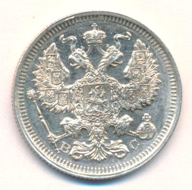 Лицевая сторона — гербовый орел, оборотная —обозначение номинала (20 копеекъ), окруженное венком из лавровой и дубовой ветвей и дата.