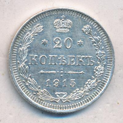 Лицевая сторона — гербовый орел, оборотная —обозначение номинала (20 копеекъ), окруженное венком из лавровой и дубовой ветвей и дата.