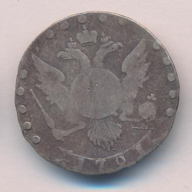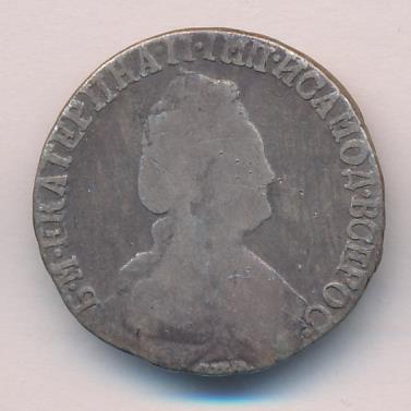 Выделяют два типа - «шея длиннее» и «шея короче». Лицевая сторона — портрет императрицы и надпись «Б М ЕКАТЕРИНА II IМП И САМОД ВСЕРОСС», оборотная — двуглавый орел, обозначение номинала цифрой и счетными точками и дата.