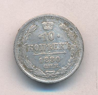 Лицевая сторона — гербовый орел, оборотная —обозначение номинала (10 копеекъ), окруженное венком из лавровой и дубовой ветвей и дата.