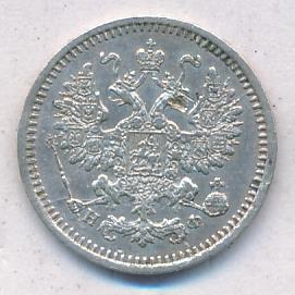 Лицевая сторона — гербовый орел, оборотная —обозначение номинала (5 копеекъ), окруженное венком из лавровой и дубовой ветвей и дата.