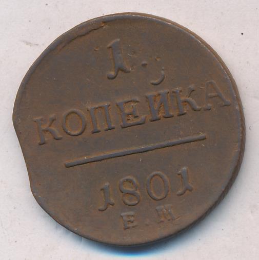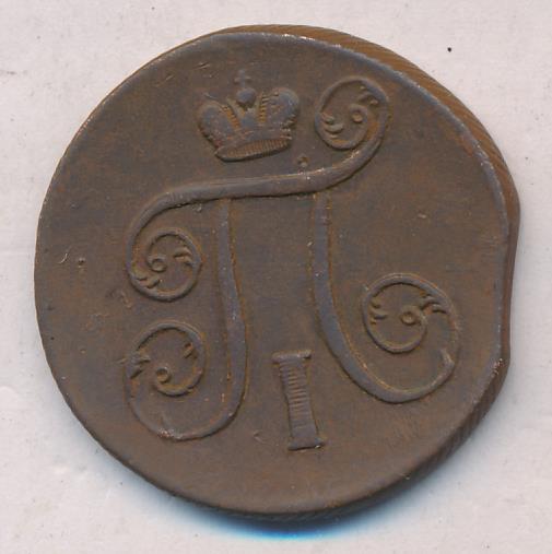 Лицевая сторона — вензель Павла I под короной, оборотная — номинал (1 копейка) и дата. Нормативный вес — 10,24 грамма, гурт — шнур.