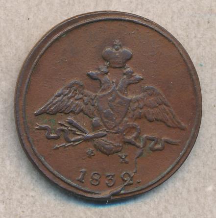 На новой серии медных монет оформление герба как на золотых (с 1817 года) и серебряных (с 1826 года), хотя еще в 1830 году было указано сделать для них орла как на платиновых. Таким образом, вышедшие в 1832 году в обращение новые медные монеты изначально имеют устаревшее оформление, а золотые и серебряные с этого же 1832 года — новое.